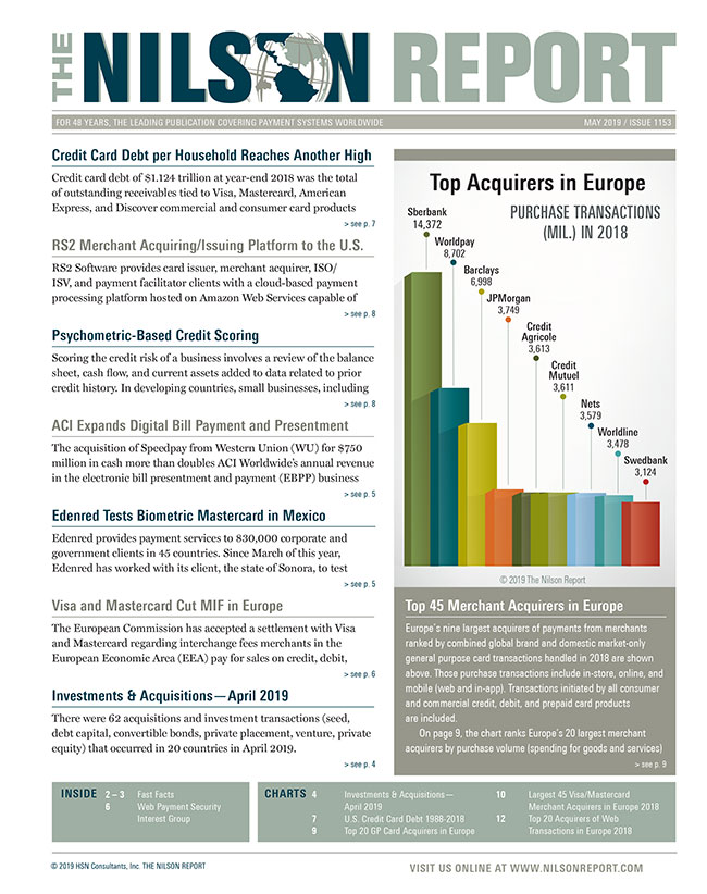 Nilson Report Top 150 Merchant Acquirers Worldwide